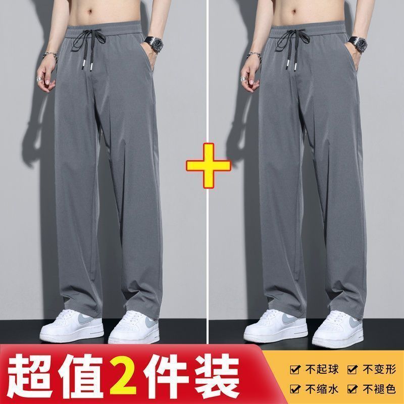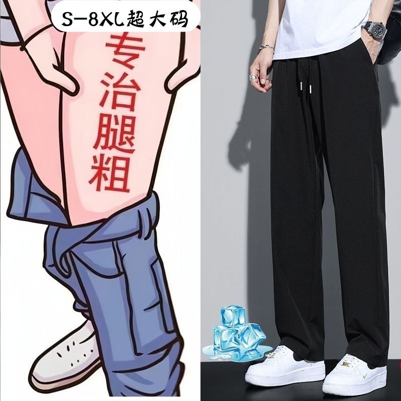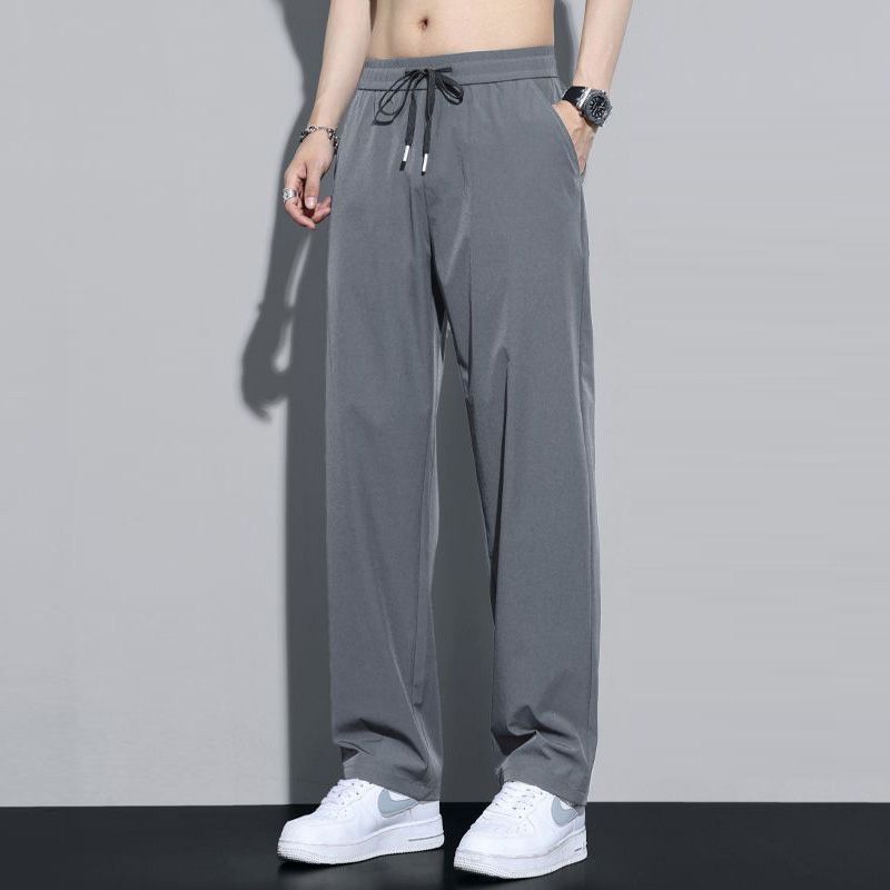 裤子夏季男士冰丝耐脏薄款百搭潮流休闲筒裤直筒宽松运动裤长裤