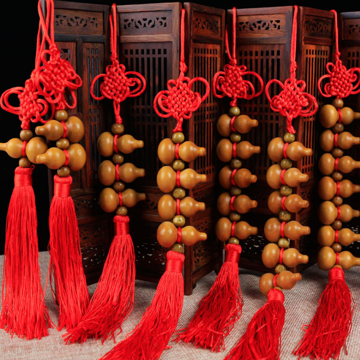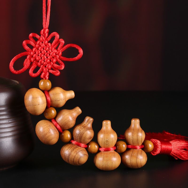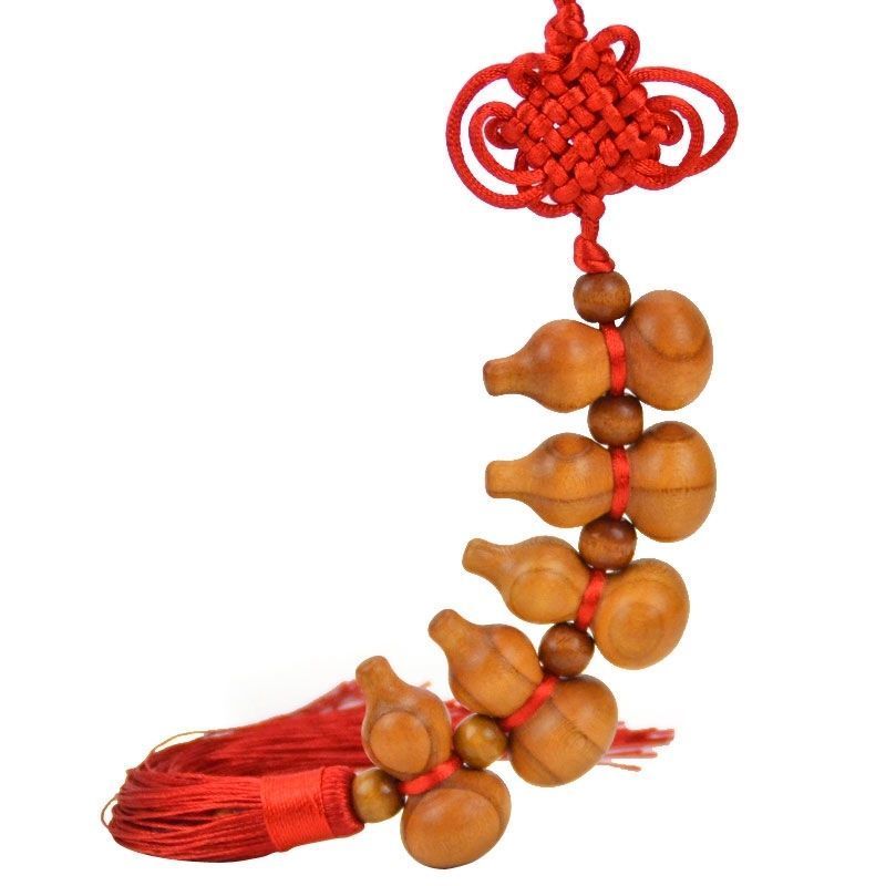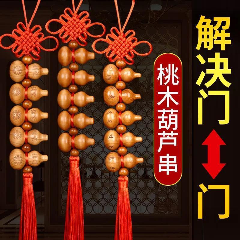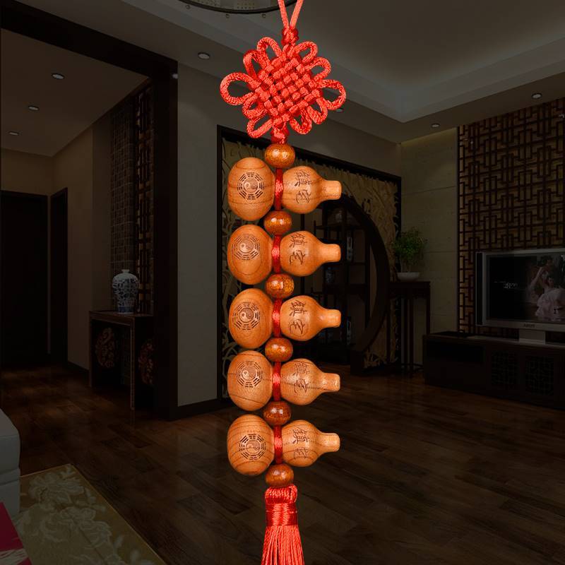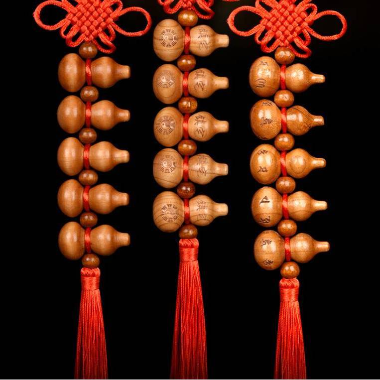 桃木葫芦中国结挂件天然葫芦家居五福小葫芦桃木挂件化解门对门