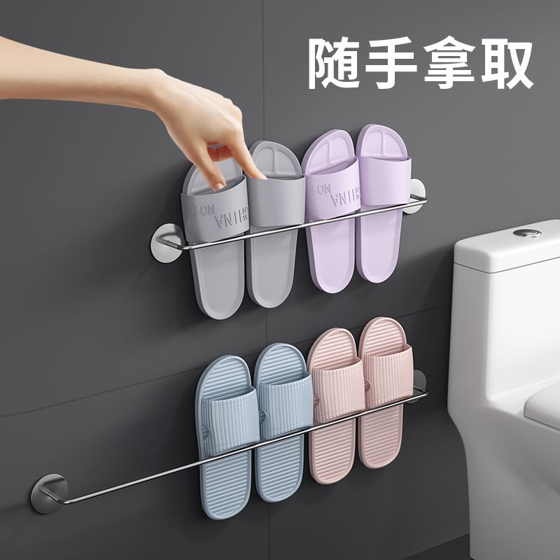 浴室拖鞋架免打孔收纳神器卫生间粘贴置物架鞋架挂式墙上挂架挂钩