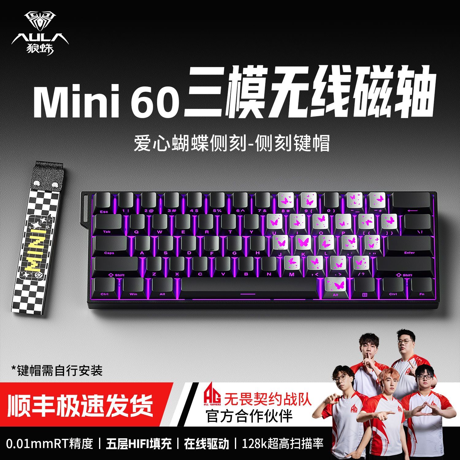 狼蛛MINI60HE侧刻蝴蝶磁轴无线蓝牙有线三模键盘机械电竞游戏FPS