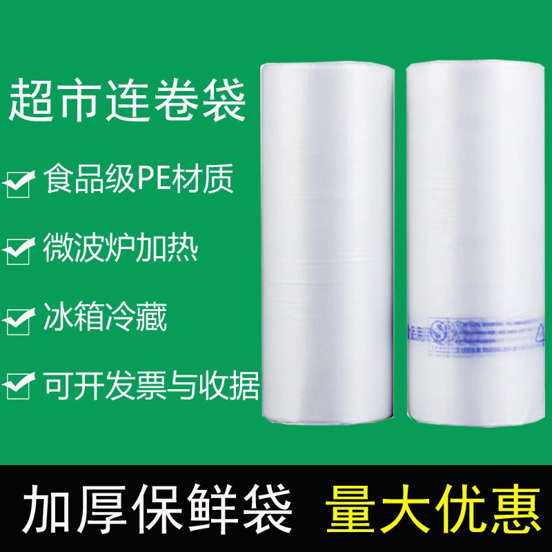 一卷2斤家用加厚食品保鲜袋pe食品级超市专用撕拉大中小号连卷袋