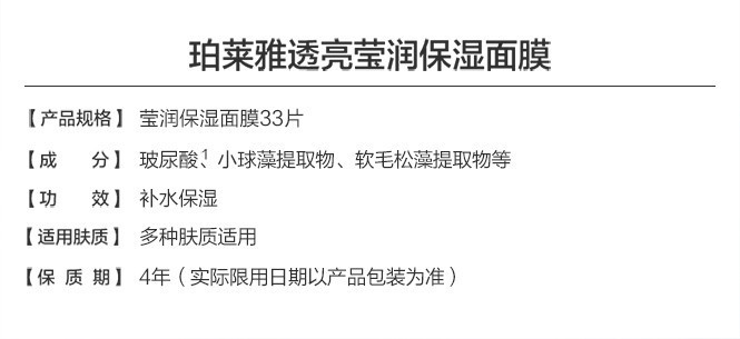 珀莱雅 【38现货立抢】小球藻莹润保湿海藻玻尿酸面膜33片补水