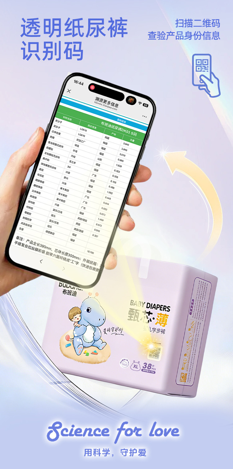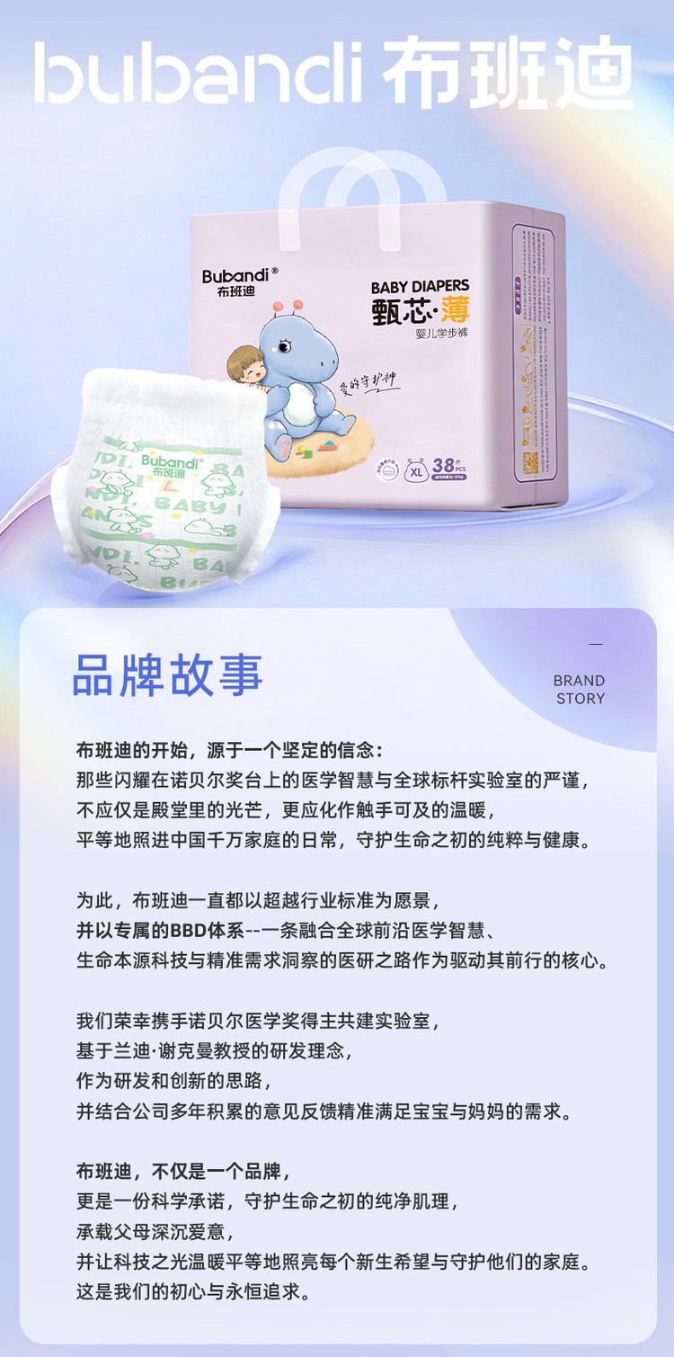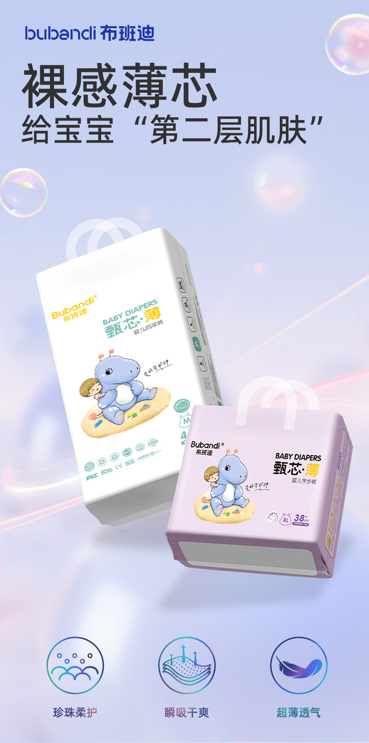 布班迪 甄芯薄新生儿婴儿拉拉裤尿不湿成长裤学步裤